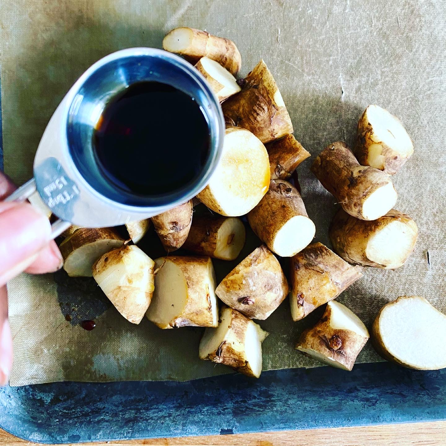 Roasting helps break down some of the inulin, so you still get gut-friendly fibre while reducing the chance of excess wind. The tamari brings umami depth, balancing that sweetness for a moreish bite.